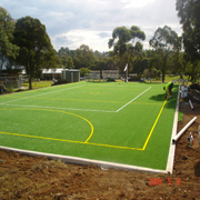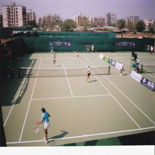 The system is the traditional "synthetic" tennis court flooring which offers good foot movement and perfect all bounce. These courts require no maintenance and are extremely abrasion proof & weather proof tennis court flooring.